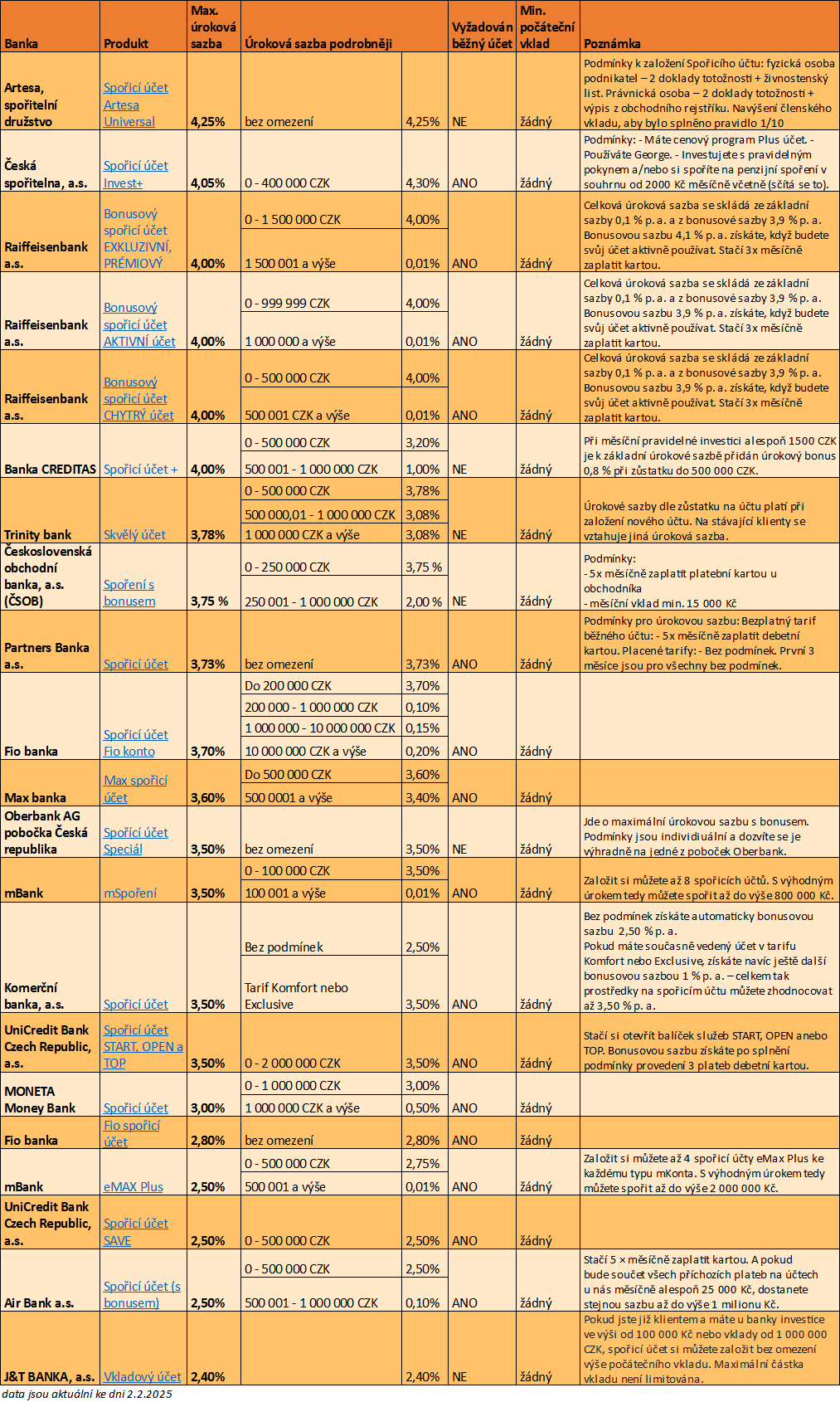 Spořicí účet je možná bezpečná volba, ale je to ta nejlepší? Pokud hledáte stabilní a bezrizikový způsob, jak uložit své úspory, spořicí účet může být dobrým řešením. Ne všechny jsou ale stejné – úrokové sazby se liší a některé sotva pokryjí inflaci. Abychom vám usnadnili rozhodování, připravili jsme přehlednou tabulku, která vám pomůže vybrat ten správný produkt.